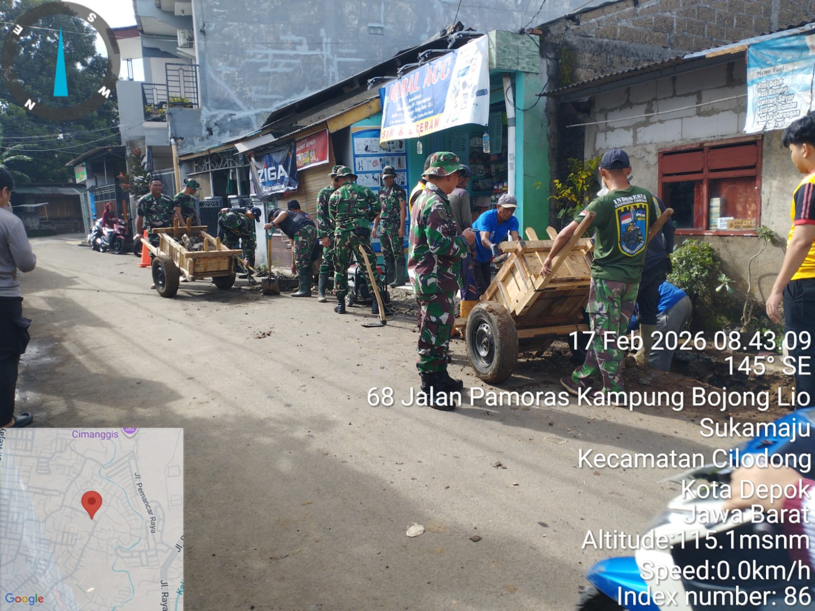 Selain pengerasan jalan, program TMMD Ke-127 juga menyasar pembangunan drainase sepanjang 200 meter di Jalan Bojong Lio RT 03/28, Kelurahan Sukamaju, Kecamatan Cilodong, Kota Depok.